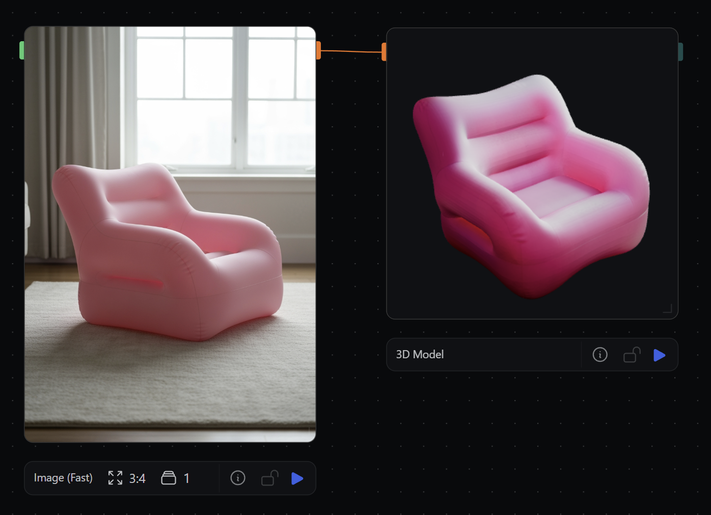 Generating a model with Trellis takes 30-45 seconds so be patient. The GLB file can be previewed in the runchat editor or downloaded to your computer.You can use this Runchat with the Grasshopper plugin to generate 3D models