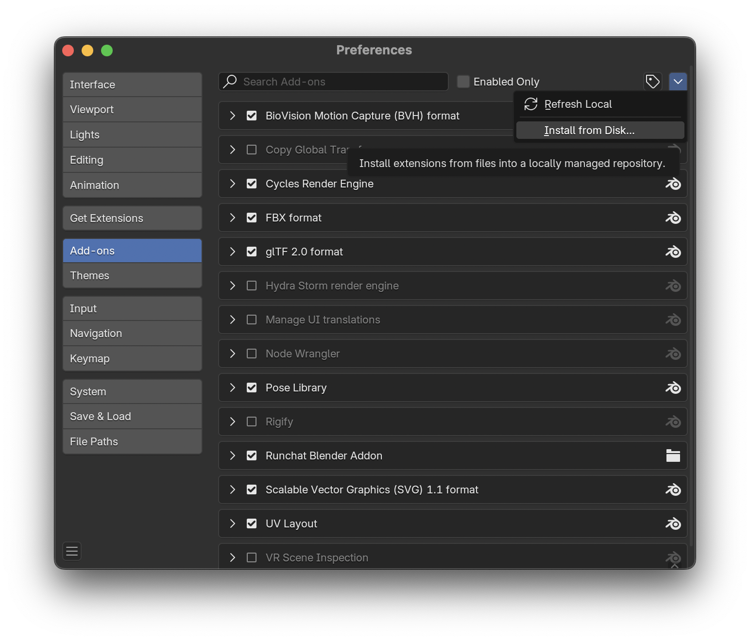 • Open Blender (3.0+) → EditPreferencesAdd-ons