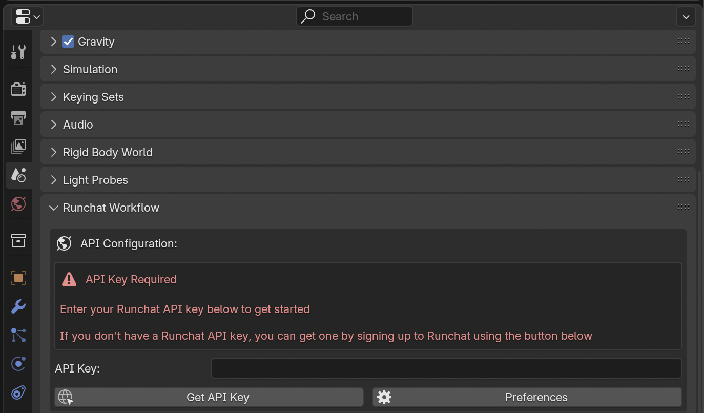 Find the Runchat panel at: Properties → Scene Properties → Runchat Workflow
