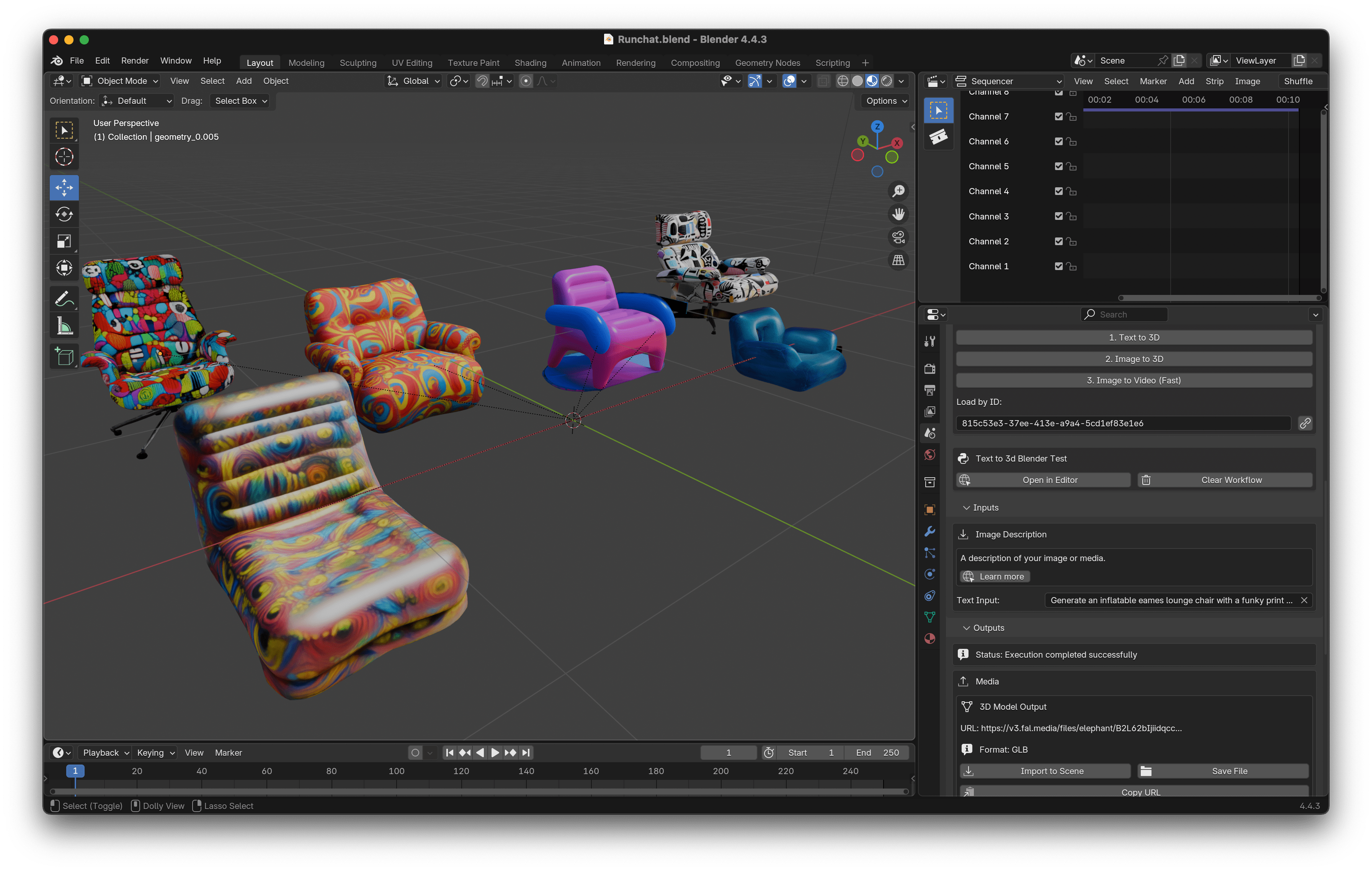 Generate 3D models directly from text descriptions and import them into your Blender scene